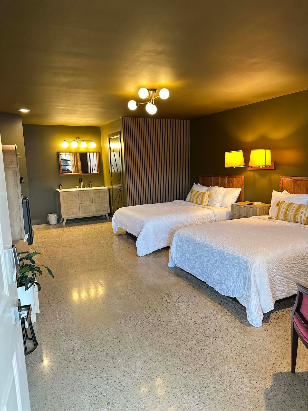 The Timber at Holly Branch's accessible ADA Premium King Room features rich fabrics and tasteful furnishings paired with natural walls and metal details. A luxury, oversized shower with rain showerheads makes this sophisticated room a luxurious experience. We offer a streamlined check-in experience. A personalized door code for your room will be sent to you a few days before your stay, so you can skip the front desk and head straight to your room.