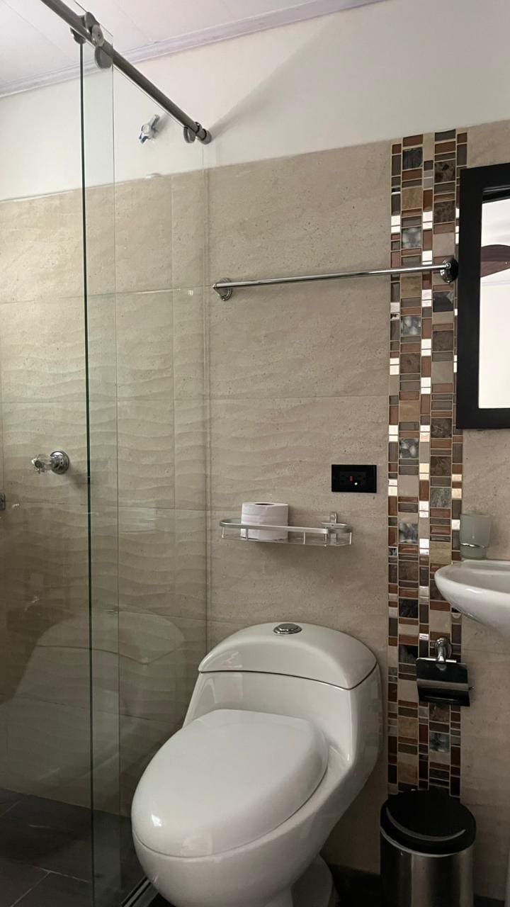Disfruta de una habitación hotelera con desayuno incluido. Este hermoso espacio cuenta con una cama tamaño doble, baño privado en la habitación y televisión. Este moderno edificio cuenta con ascensor, recepción las 24 horas, WiFi, GYM, espacio de coworking para profecionales trabajando desde casa, y parqueadero (SUJETO A DISPONIBILIDAD Y A COSTO ADICIONAL, ¡PREGUNTANOS!, no apto para carros grandes). Desayuno incluido para estadías cortas (estadías de más de una semana no incluyen desayuno).