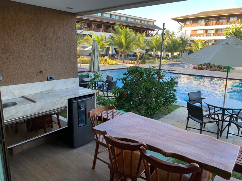 Flat térreo de frente para as piscinas decorado e equipado para lhe acomodar com conforto e praticidade, estrutura de Resort a beira mar com estacionamento, salão de jogos, academia, cinema, quadra poliesportiva, brinquedoteca, quadra de tênis, restaurante, conveniência, pista de cooper, serviço de bar, recreação e massagens e um parque aquático fantástico!