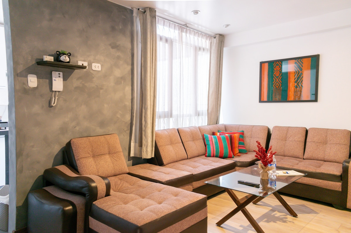 Departamento acogedor e independiente con una habitación, espacio de trabajo, kitchenette, lavandería y un baño, ubicada en centro histórico, a solo tres cuadras de la plaza de armas, incluye todos los servicios, cerca a muchos restaurantes, lugares de entretenimiento, centros artesanales y sitios arqueológicos.