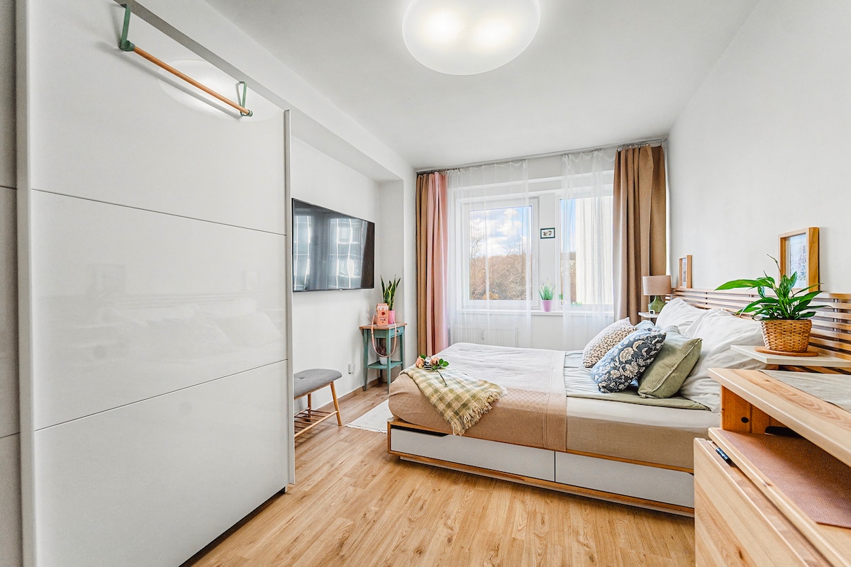 Modern, cozy and super clean studio apartment easily accessible to the Old Centre of Prague (15 minutes). Self-check in (from 5 p.m. or earlier based on request). WIFI (50 Mb/s), NETFLIX, coffee and tea for free. 5 minutes’ walk to tram station (then 15 minutes to the Old Centre). 10 minutes’ walk to metro station (then 4 minutes to the Old Centre). 1 double bad (200 cm x 160 cm), equipped kitchenette. 1 bathroom with shower corner, toilet,washing machine (hair dryer).