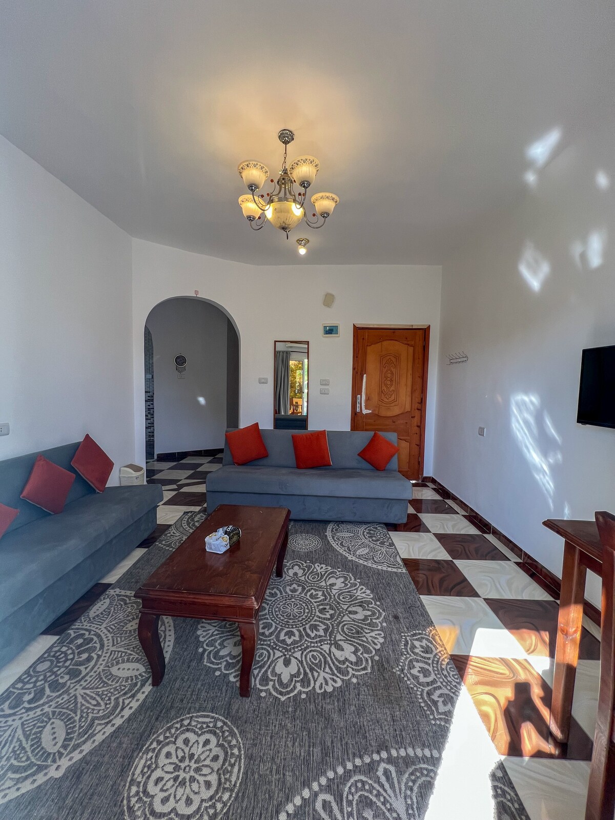 Kick back and relax in this calm, stylish one bed room apartment in a quiet and decent neighborhood located in Blue Hole Plaza Compound in Mashraba Area, Dahab - South Sinai, Egypt. Minutes from the Lagoon and the beach walkway. Fully furnished with all needed appliances, high speed and dedicated WIFI, Satellite TV and Netflix and a cozy front yard with a nice dining area.