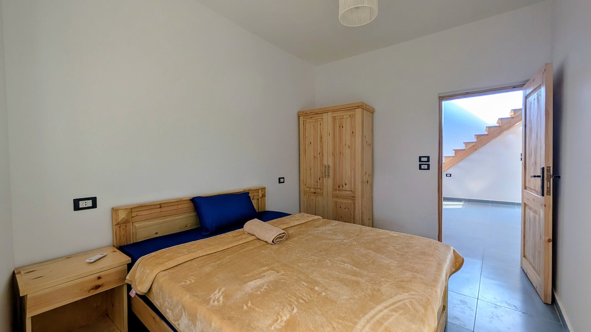 Welcome to your cozy home away from home in Dahab! Located on the first floor, the ‘Sea’-through apartment offers beautiful views of the sea through palm branches and sun rays, just as the picture shows. This spacious 1-bedroom apartment is filled with handmade furniture and accessories that reflect the organic and natural lifestyle we love in Dahab. Situated on the second line directly by the beach, it’s just a 3-minute walk to Assala market and a 10-minute walk to the Lighthouse.