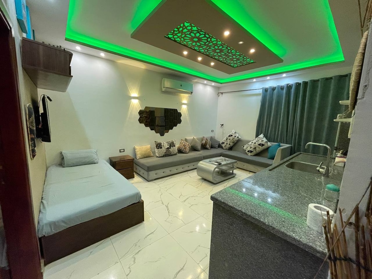 This special place is close to everything, making it easy to plan your visit.(200 to 450 meters to reach the the beach, lighthouse and asala square). Cozy 1 BDRM chalet with 1 Queen bed (160 cm * 200 cm) including Air conditioner in the room . Fully equipped kitchen for short & long term rental .