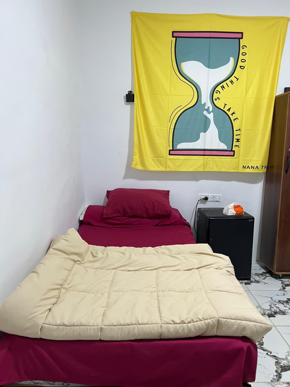 Room 50 – Double Room with Private Beach Access A comfortable double room offering calm back views and direct access to the hotel’s private beach area. Features two single beds, A/C, mini-fridge, clean bathroom with shower, soft linens, and daily essentials. A simple and quiet stay just steps away from the sea—ideal for travelers who want comfort and beach access at a great price.