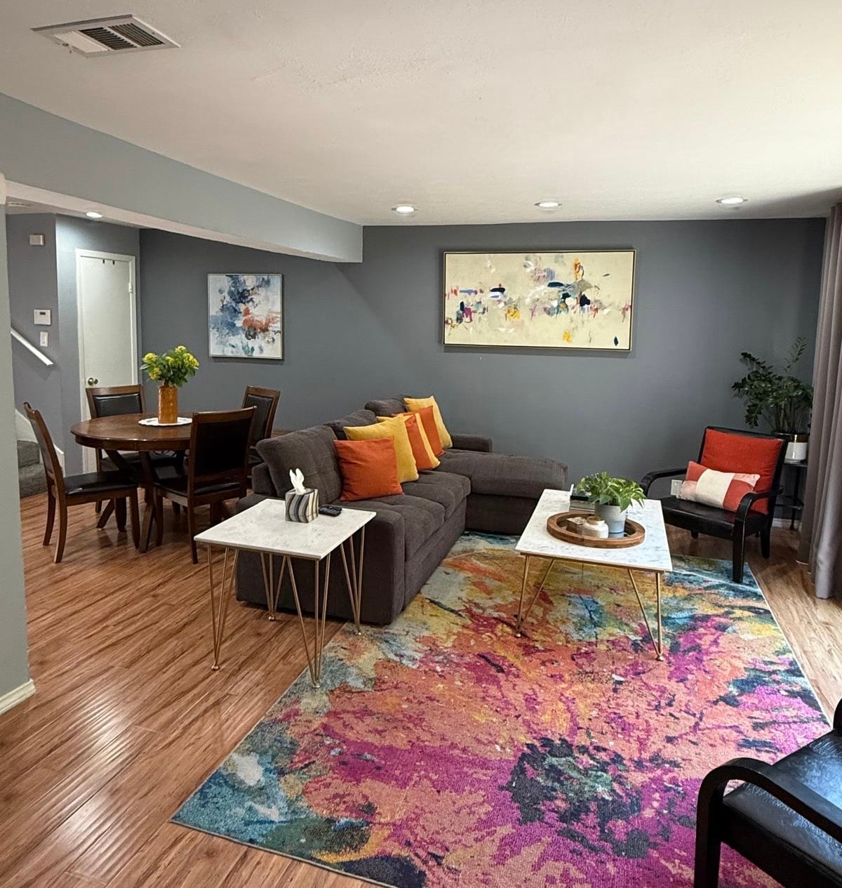 Get the best of urban living in this tucked away luxury townhouse! Enjoy everything from cooking your heart out in the fully equipped luxury kitchen, to kicking back in front of the 86” TV (YouTube TV, Netflix, Disney+), or just simply enjoy a cocktail on the back patio! Luxury linens (1200 thread-count sheets, RH towels, amazing mattresses), well equipped bathrooms, walk-in closet, etc. If business travel is your game, enjoy high speed WiFi and a full desk for your workspace!