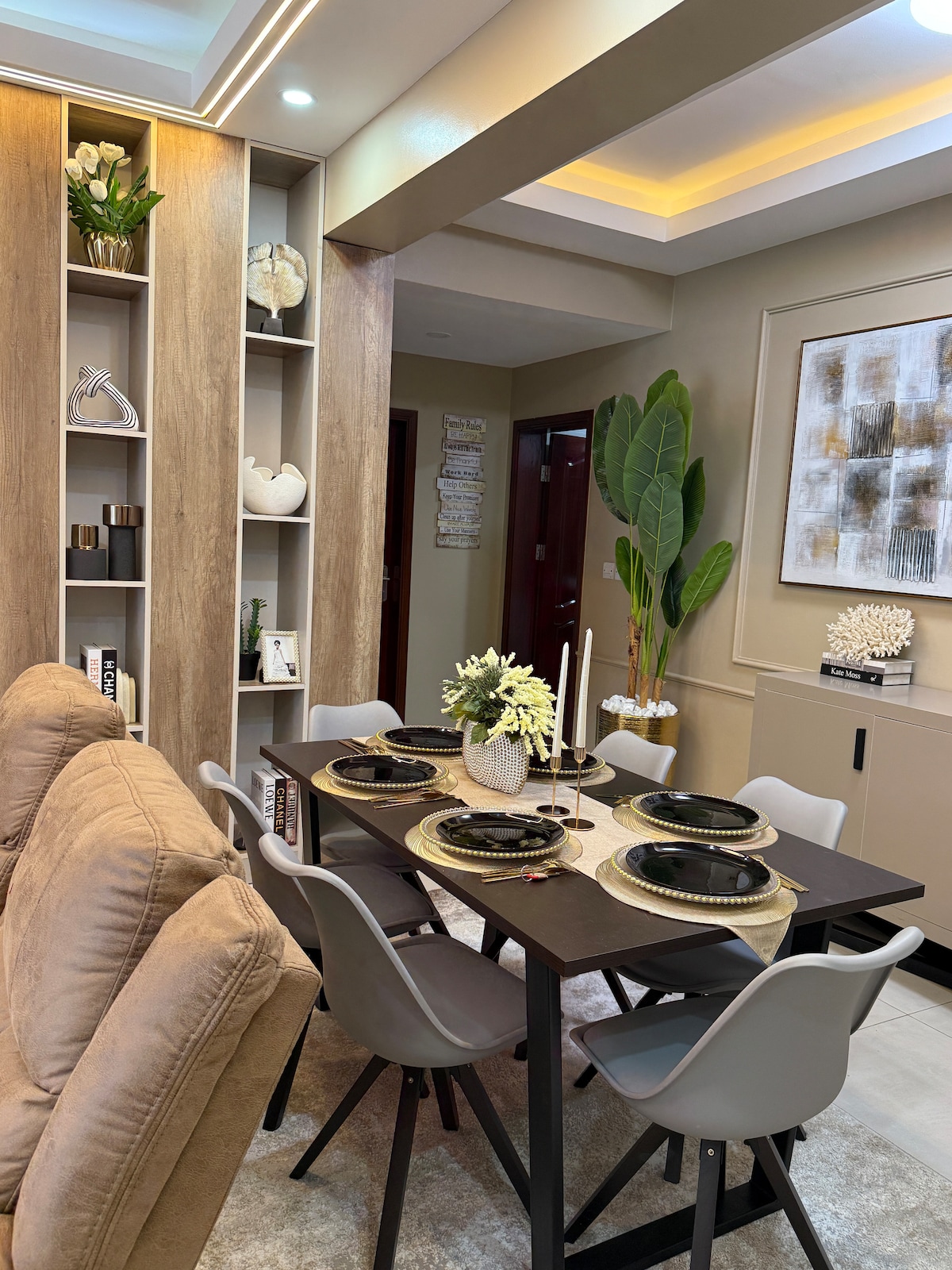 Kick back and relax in our stylish home away from home in Dar ! This modern 2-bedroom apartment offers comfort, convenience, and relaxation. located just off main road for easy access, yet tucked into a peaceful and quiet area. What makes it special Swimming pool for relaxing anytime 24/7 security Strong Wi-Fi – perfect for work or streaming Netflix included Fully equipped kitchen with complimentary drinking water, eggs, and basic essentials Just minutes from shops ,restaurants& market