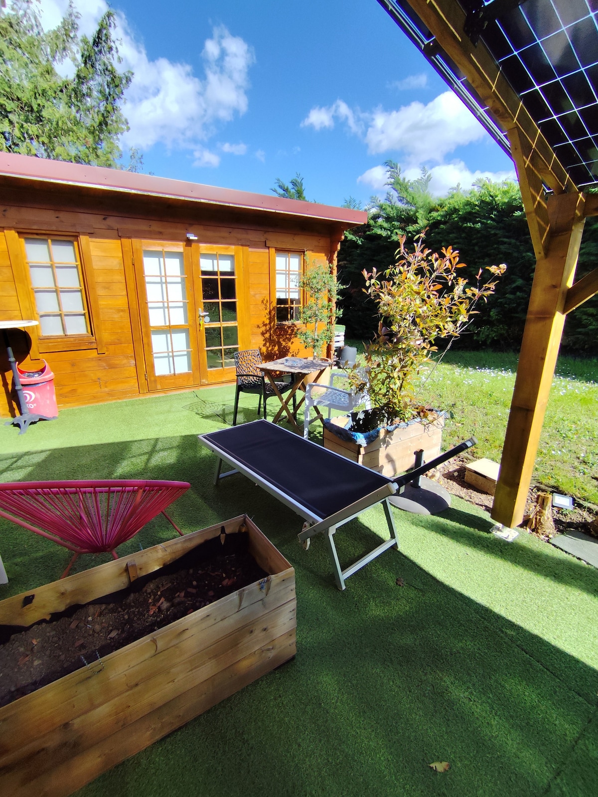 Un chalet 56m2 attenant a notre résidence dans un terrain de 3000m2 clôturé. Une chambre avec un lit de 140 un grand dressing, une salle de bain avec cabine de douche, une salle a manger salon un clic clac qui sert de lit, possibilité de mettre un lit d'appoint une personne, cuisine et une terrasse équipée d'un barbecue, bains de soleils et transat Jeux extérieur et balançoire pour les enfants. Terrain de pétanque avec plusieurs triplettes à disposition Piscine en bois hors-sol 4m*7m