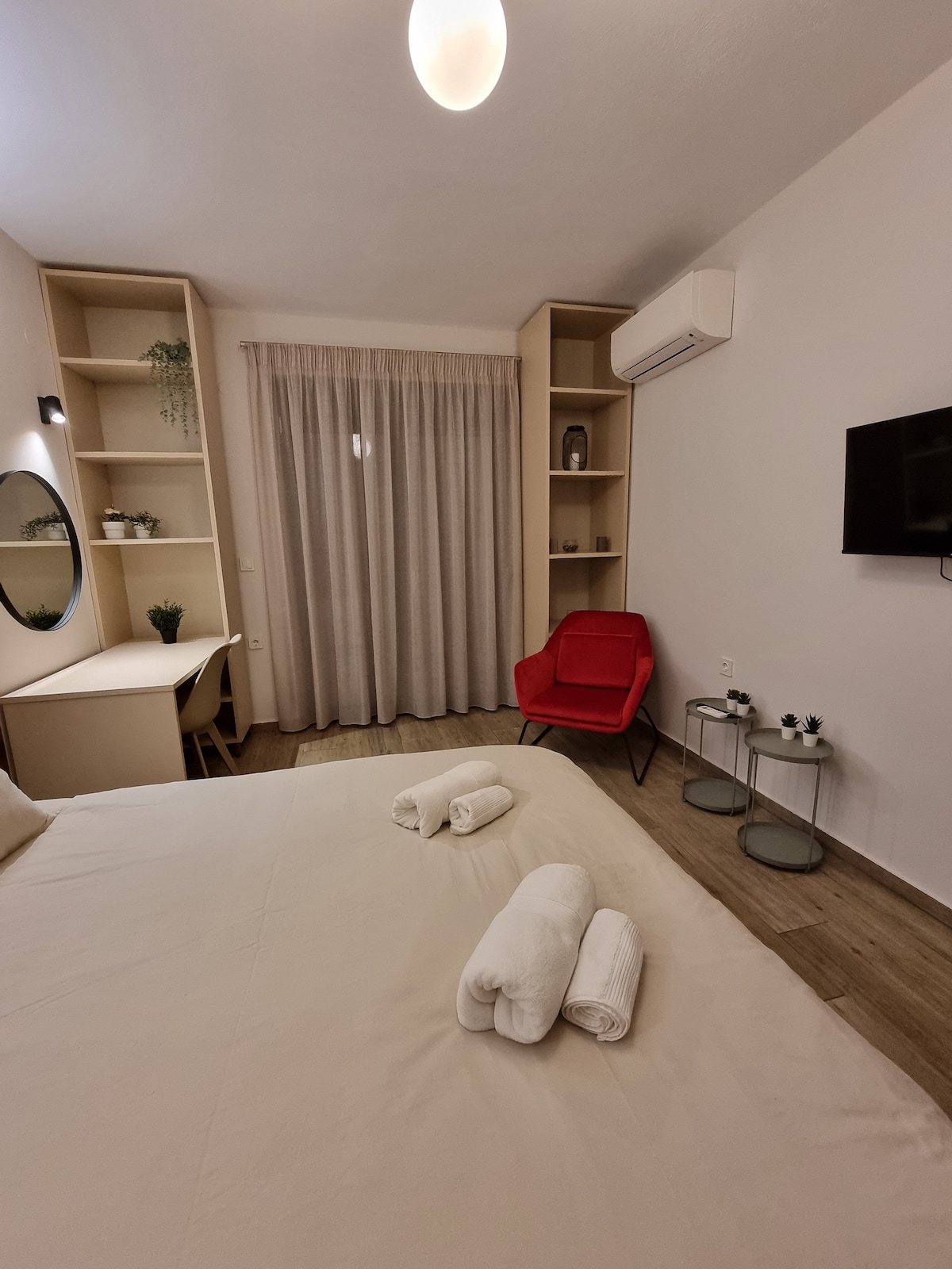 Ένας σύγχρονος και καλαίσθητος χώρος σας υποδέχεται φιλόξενα καλύπτοντας κάθε ανάγκη σας. Διαθέτει άνετο υπνοδωμάτιο με ευρύχωρη ντουλάπα και έξυπνη τηλεόραση, πλήρως εξοπλισμένη κουζίνα, ιδιωτικό μπάνιο, κλιματισμό, δωρεάν wifi. Βρίσκεται σε απόσταση μόλις 5 λεπτά με τα ποδιά από την κεντρική πλατεία της πόλης. Απέναντι υπάρχει σούπερ μάκρετ, φαρμακείο, φούρνος και άλλα καταστήματα. Είμαστε στη διάθεσή σας για όποια πληροφορία χρειαστείτε σχετικά με την περιοχή.