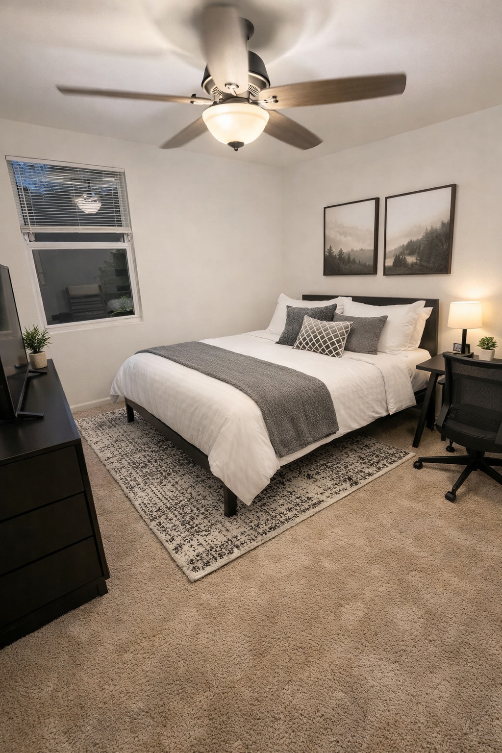 Enjoy a peaceful one-bedroom retreat with a private attached bathroom, perfect for solo travelers or couples. The room features a comfortable bed, soft linens, and a clean minimalist design that feels relaxing and inviting. Guests also have access to a modern shared kitchen with stainless steel appliances for simple meals. This quiet, comfortable space offers a convenient home base whether you’re visiting for work, exploring the city, or simply looking for a restful stay.