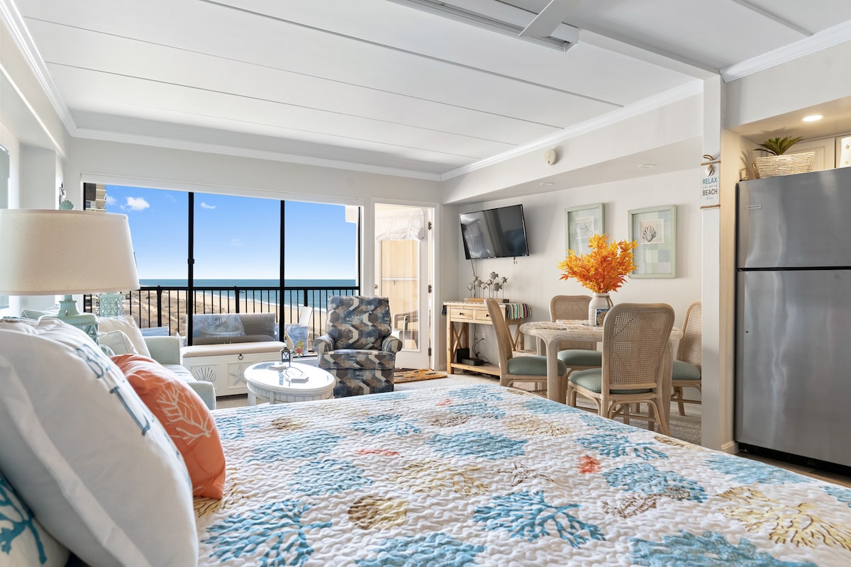 明亮的海滨单间公寓 | 可住4人,带泳池通道