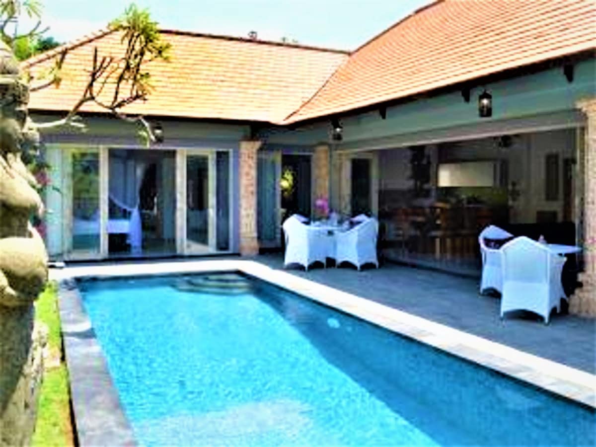 FAMILY FRIENDLY VILLA FOR UP TO 6 GUESTS, VILLA 2, IS BRIGHT AND COLOURFUL REFLECTING THE MANY COLOUR'S OF BALI, 3 BEDROOMS 2 WITH LARGE 4 POSTER BEDS AND ONE WITH 2 KING SINGLES A HUGE LOUNGE DINING WITH MODERN FULL KITCHEN, ALL LOOKING OUT TO THE 10M POOL & GARDENS. MEALS CAN BE EATEN INSIDE OR OUT BY THE POOL. WE HAVE PURE DRINKING WATER AND ICE PRESS BUTTON FROM THE FRIDGE AND CLEAN WATER TO ALL TAPS, AIRPORT FULL HOUSEKEEPING EVERY DAY. THIS VILLA IS NOT SUITABLE FOR YOUNG CHILDREN