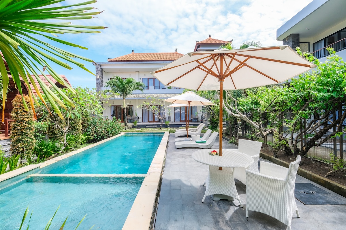 完美泳池和阳台,3分钟即可抵达库塔海滩
