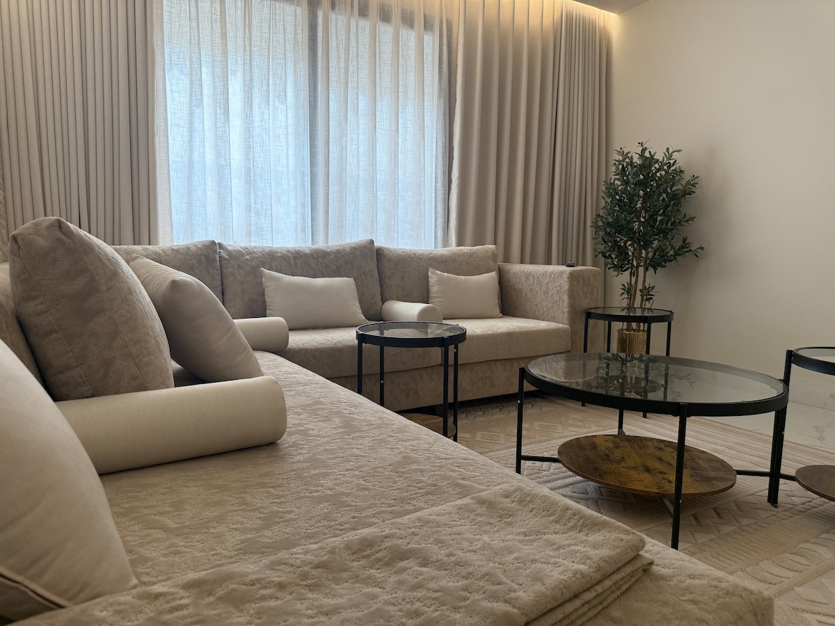 شقة أنيقة مكونة من غرفة وصالة، مناسبة للإقامات القصيرة أو الطويلة، تجمع بين الراحة والتقنية الحديثة. 📺 شاشة 70 بوصة ذكية مع اشتراك OSN . 🍳 ركن مطبخ متكامل يحتوي على ثلاجة، ميكروويف، غلاية، موقد كهربائي. 🔐 دخول ذكي باستخدام قفل إلكتروني لتسهيل الوصول الذاتي بأمان. 🪟 بلكونة خاصة لكل غرفة تمنحك مساحة خارجية خاصة ومريحة. 🕒 مراعاة للهدوء أوقات الراحة من 10:30 مساءً حتى 7:30 صباحاً – نرجو عدم الإزعاج خلالها. 📶 مزايا إضافية: • تكييف سبليت • إنترنت واي فاي • مفروشات نظيفة وعصرية