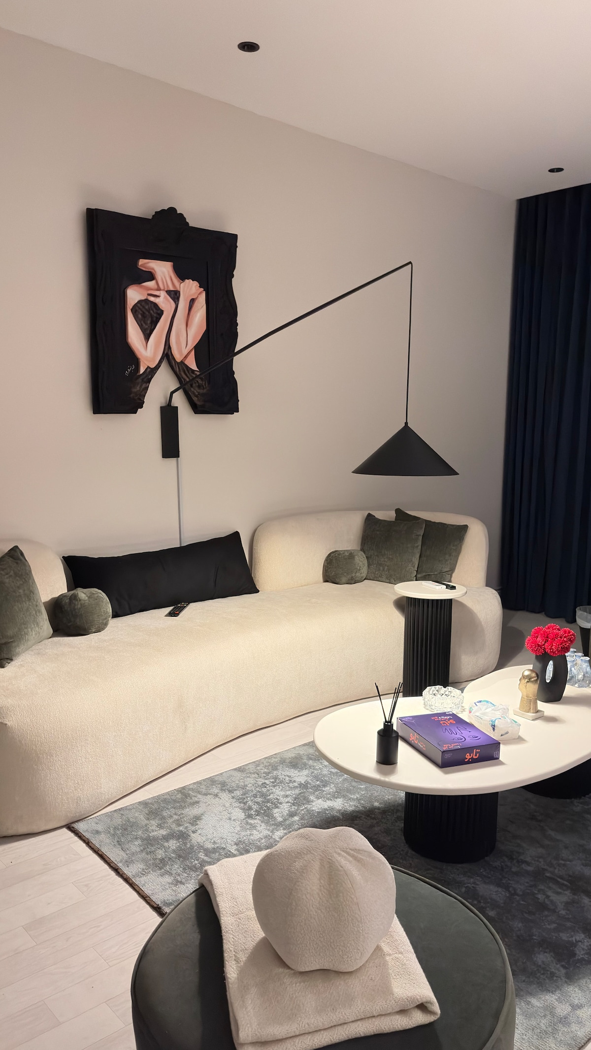 استمتع بإقامه مريحه في شقه انيقه وعصريه، شقه مجهزه بالكامل لتوفر لك تجربه استثنائيه، من جلسه انيقه مع اضاءه دافئه، الى ركن قهوه مرتب لعشاق القهوه، الديكور العصري بلمسات النباتات والفن الحديث، كلها تمنحك احساس بالراحه والهدوء مع موقع مميز.