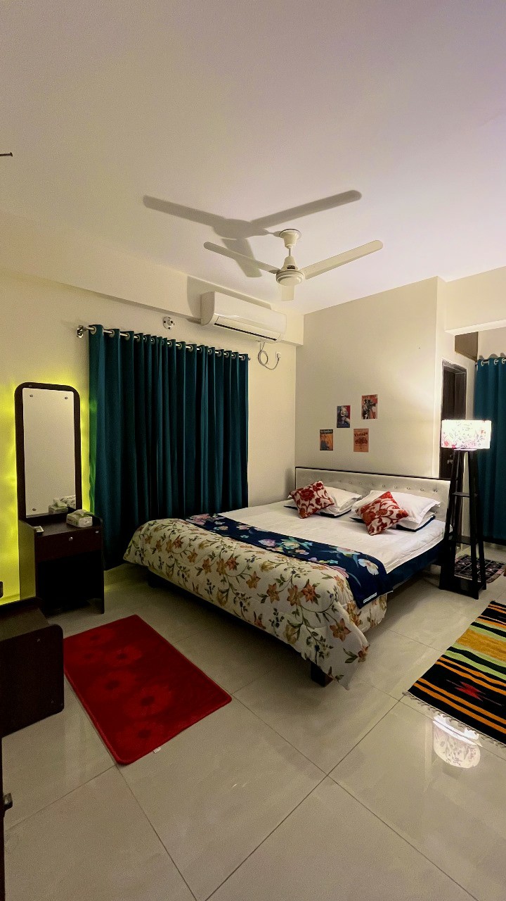 Luxurious 3BR serviced apartment with euro orthopedic beds, fresh linens, towels, AC, work desks, private balconies, & en-suite bathrooms with hot showers. Enjoy a stylish living room with TV & a modern kitchen fully equipped with microwave, toaster, fridge, and washing machine. Offers high-speed Wi-Fi, power backup, and access to shared rooftop, prayer room, BBQ grill, & game room. Nestled in North Banani—safe, serene, and green. Ideal for expats, families, business travellers, and long stays.