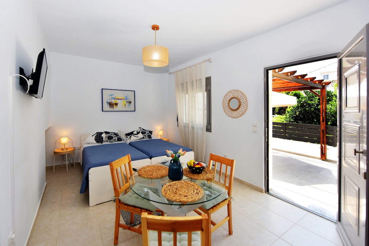 Welcome to our charming Greek-style guest house in Ialysos! This brand new, beautifully decorated retreat offers a cozy outdoor space and is just a 10-minute walk to the beach. Enjoy the vibrant local scene with many restaurants and specialty shops nearby. Located only 7km from the center, you'll be close to all the island's attractions. Known for its ancient ruins and rich history, Rhodes is the perfect base for your adventure. With the owners living on-site, friendly help is always available!