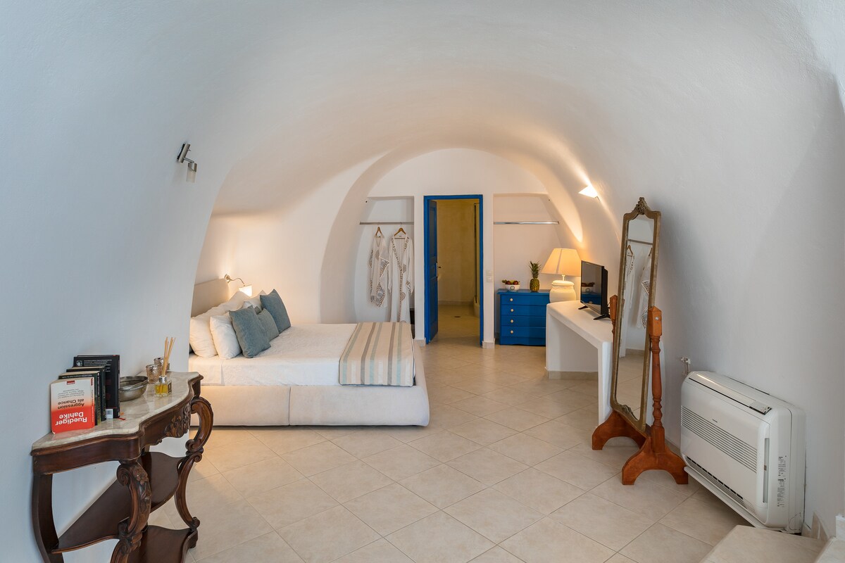On the top floor of a two level house 5' walking from Fira center the capital of the island KENDIMENO opens its doors to our guests offering an authentic and welcoming experience in the island of Santorini. Within walking distance of less than 10 minutes you can access the main square of Fira, hype and fine restaurants, mini market in 2 minutes, bus and taxi station.