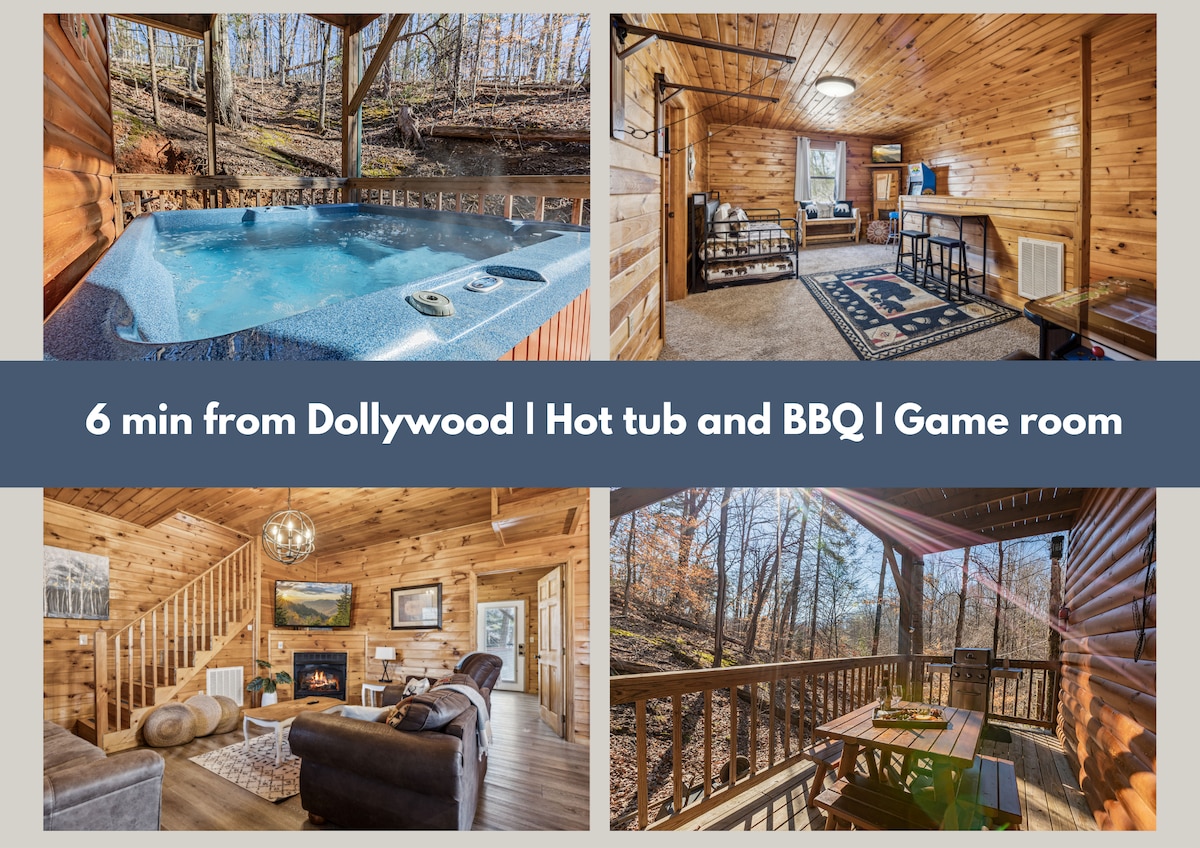 A wonderful stay awaits you at The Cozy Fox! 🦊 This new cabin is perfect for your family trip or a couple's getaway (sleeps up to 8). Experience a true mountain cabin only 1.7 miles from the parkway... halfway between Gatlinburg and Pigeon Forge! Peaceful, beautiful views bring everyone together with 60 feet of outdoor covered deck space featuring outdoor dining, hot tub, fire table, and relaxing daybed swing. Weber BBQ grill on the roomy front porch, and enjoy a fun-filled game room!