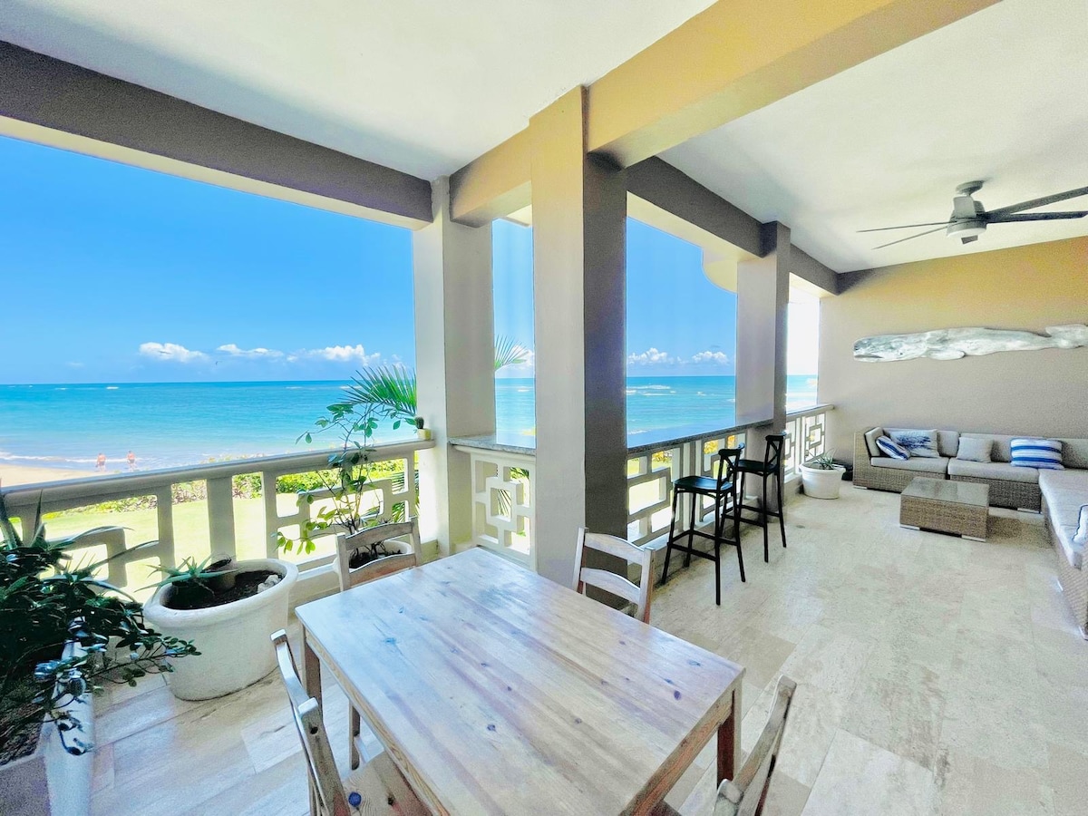 Relax in this luxury apartment nautical themed, recently and fully renovated with 300 Mb Wi-Fi, first line to a private beach and a stunning sea view. Enjoy the sunset on the terrace, overlooking the paradisaical private beach and the warm Caribbean sea; or take pleasure with the condominium services as swimming pool, Jacuzzi gym, restaurant, private security, reception... **The apartment is disinfected before and after each reservation with suitable products, and we also make available to the client hydro-alcoholic gel and a disinfecting spray. A pocos metros del condominio tienes una gran variedad de restaurantes, pubs y un minimarket con servicio a domicilio. En la zona también hay peluquerías, un banco, farmacias, un centro médico y, a solo 40 minutos en automóvil, Santo Domingo.