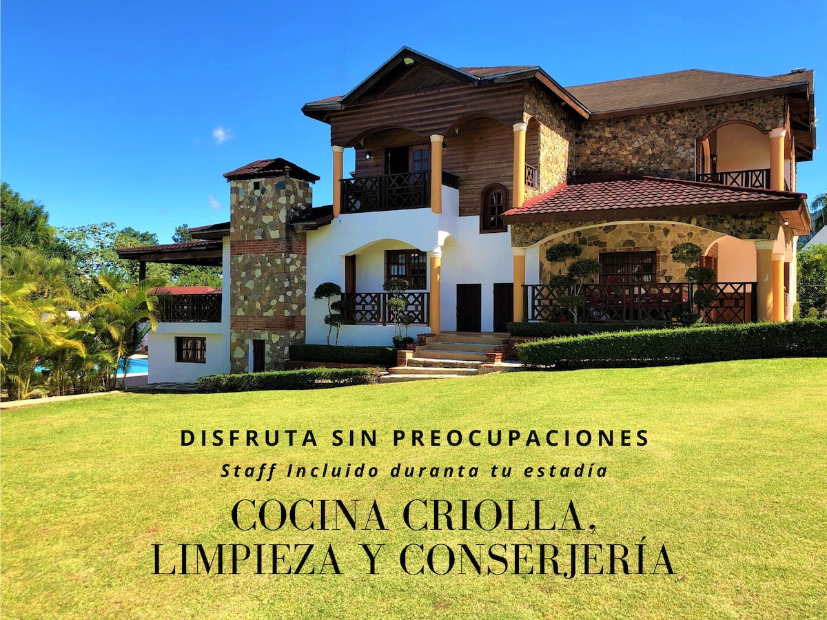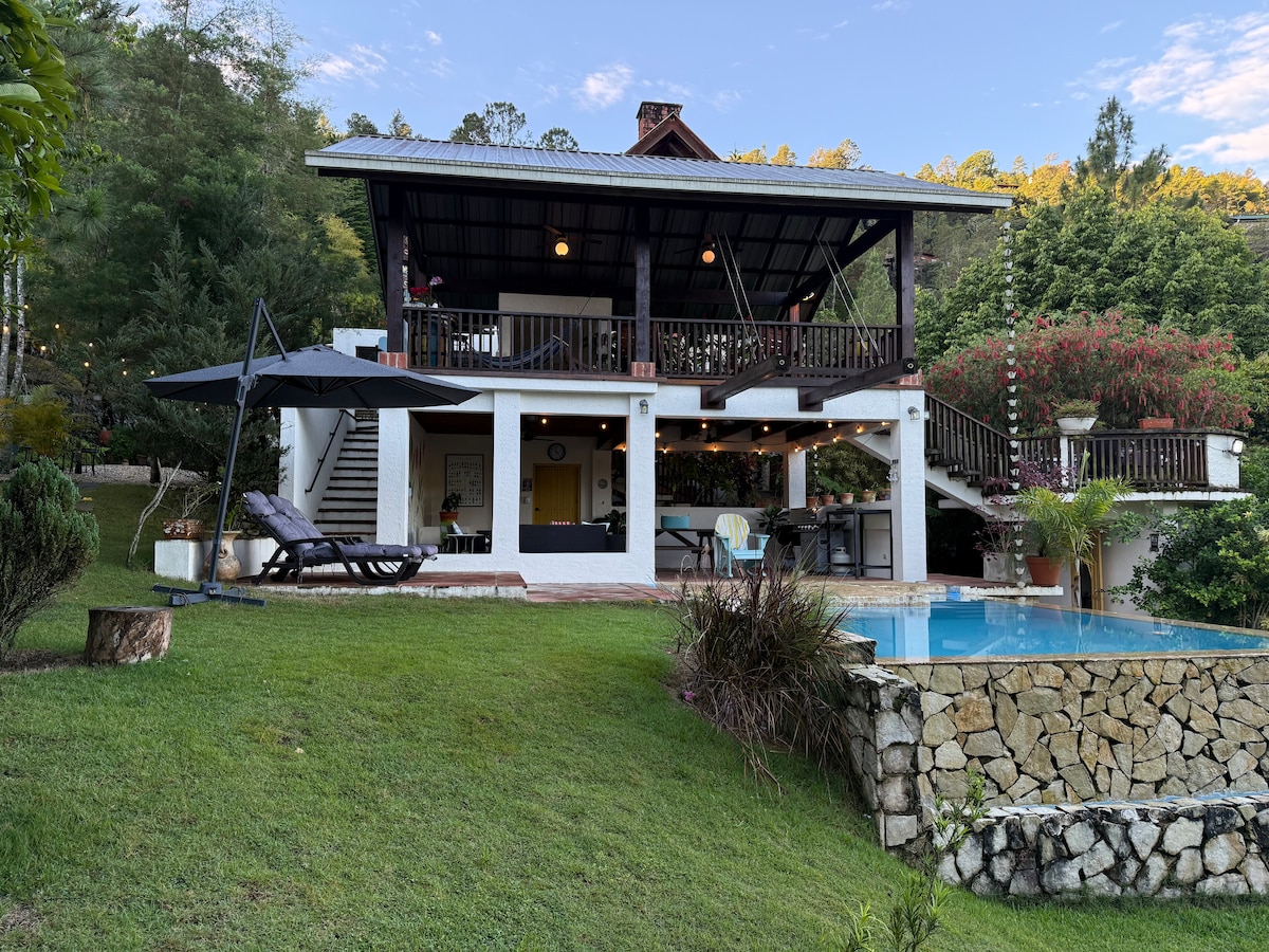 DISCOVER THE PERFECT MOUNTAIN RETREAT FOR FAMILIES AND GROUPS AT OUR SPACIOUS HOME. - Breathtaking Views - Private Gazebo with BBQ and Heated Pool - No 4x4 Vehicles Needed - Pet Friendly - High Speed WIFI - Indoor Fireplace - Fully Equipped Kitchen - Scenic Dining Room - Parking Space for 4 cars - 50" HD TV with Netflix, Youtube, etc. - Location is ideal for practicing hiking and mountain biking, you can get around safely within Jarabacoa.