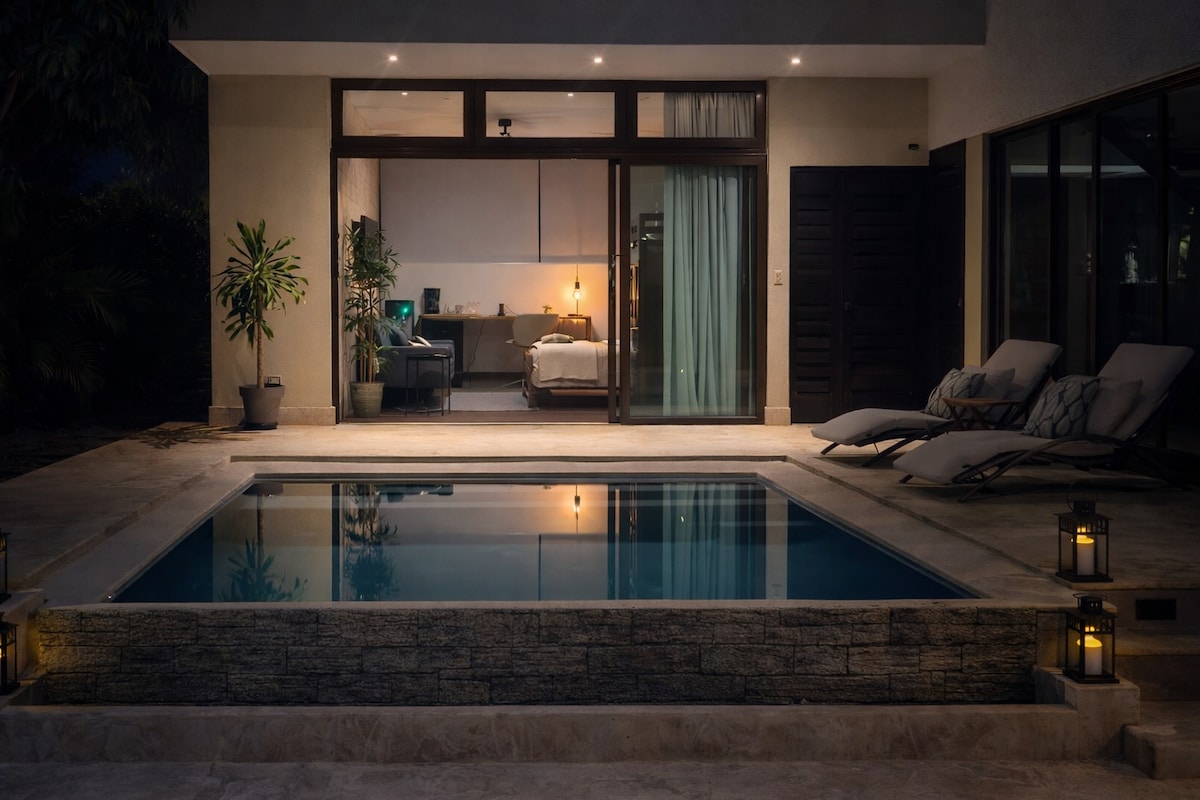 Make yourself at home in our modern studio in Cabarete, located in the dynamic neighborhood of "Callejón De La Loma" — just a short walk from the beach and all the main attractions. This contemporary space features an open-layout bedroom with a queen-size bed, a functional kitchen, a spacious bathroom, and a private balcony. Designed with large sliding patio doors for plenty of natural light, it's accented with cozy curtains, Spanish tile, and a stylish mix of wood and steel elements.