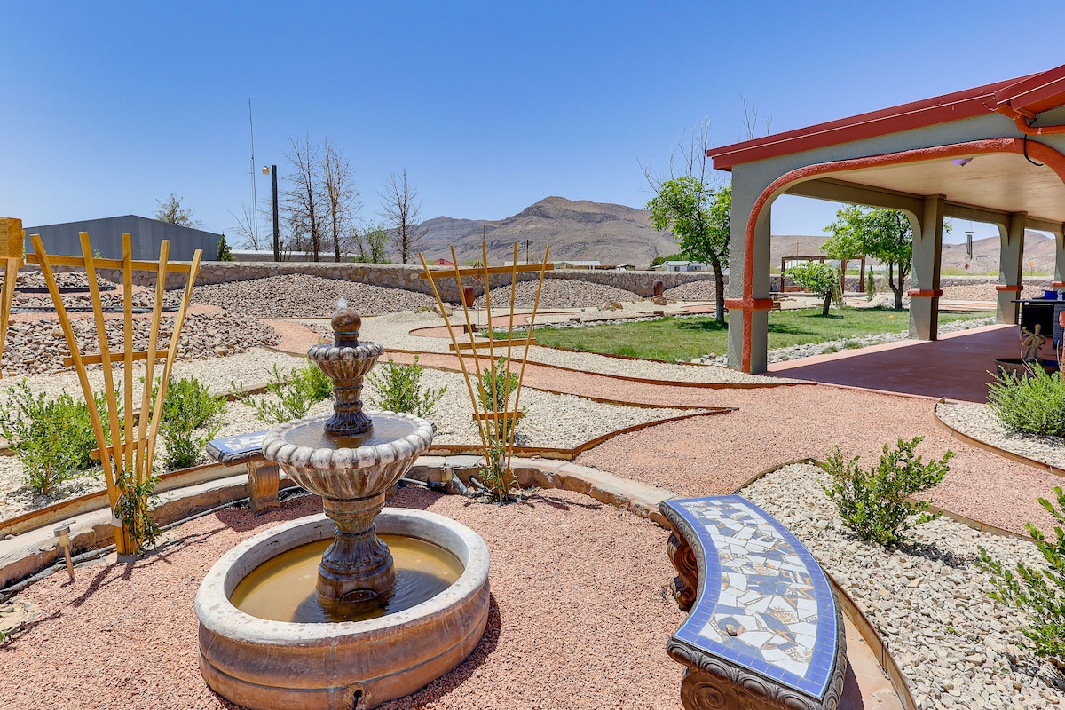 Escape the desert in this beautiful modern home with HOT TUB, exercise room and office space. Relax with the whole family at this peaceful private hidden gem. Enjoy the beautiful NM sunsets and beautiful Organ Mountain View. Children can play on playground and trampoline while you enjoy the fire pit. This is a great space for any work related stay or short relaxed vacation. Conveniently located near US 70 close to White Sands (sleds included) abouand both Red Hawk and Sonoma Ranch Golf Courses!
