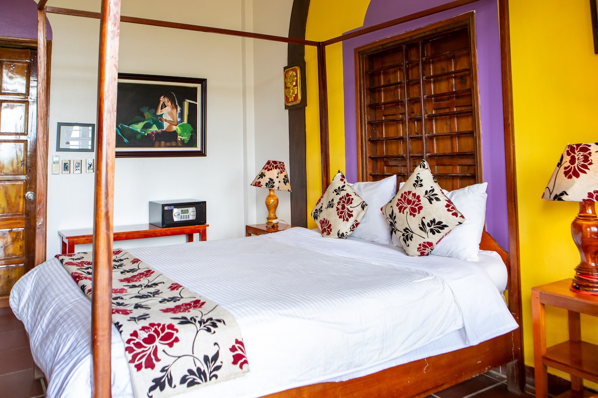 Victory Road Villas, opposite the Son River, offers a quiet boutique stay with comfort and style. Each villa has a private entrance from our pool terrace, a lounge, and a kitchenette. There is a private courtyard with outdoor bathtub and rain shower. Upstairs, the air-conditioned bedroom includes a king bed, en-suite shower, and balcony with garden and pool views. All rooms include Smart TV, Wi-Fi, and kitchenette. The Villas Restaurant serves high quality western and Vietnamese dishes.