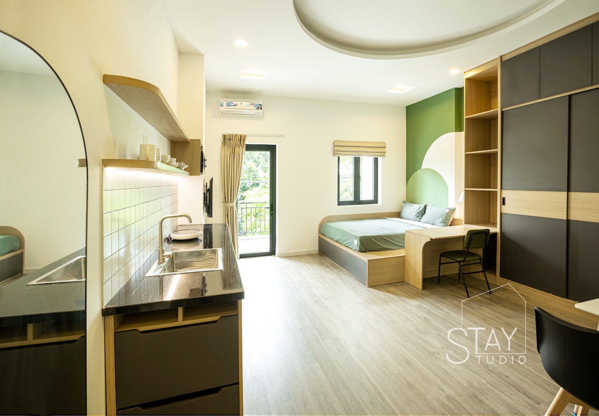 Arista- a modern home, where is located on a peaceful road of An Phu Ward, District 2, is 100 meters away from Drug Store, Starbucks, convenient stores, and restaurants. A private rooftop terrace with an open kitchen, BBQ table grill and outdoor sitting areas surrounding with green trees and flowers. Apartment is about 45m2 wide, with bathroom and fully stocked kitchen inside. Arista creates a quiet, clean, and green atmosphere place with all the desired amenities for the best comfortable stay.