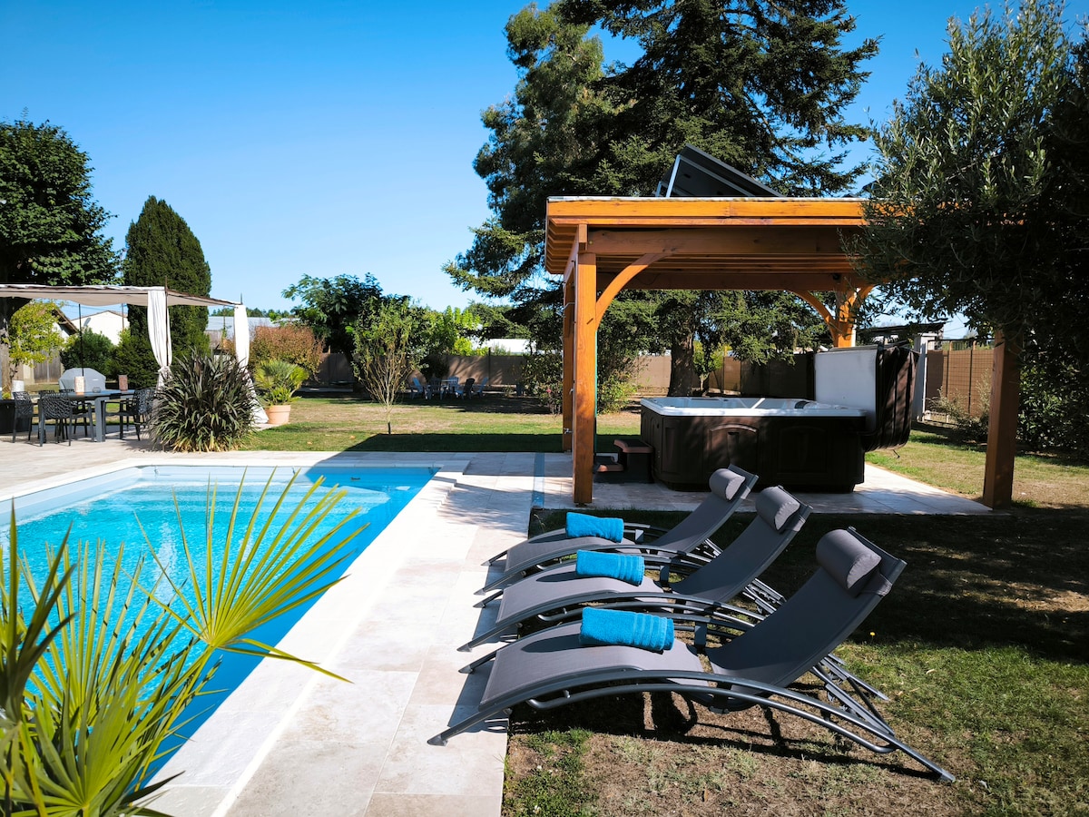 Touzac:温馨的小屋,配有游泳池、按摩浴缸和wallpod