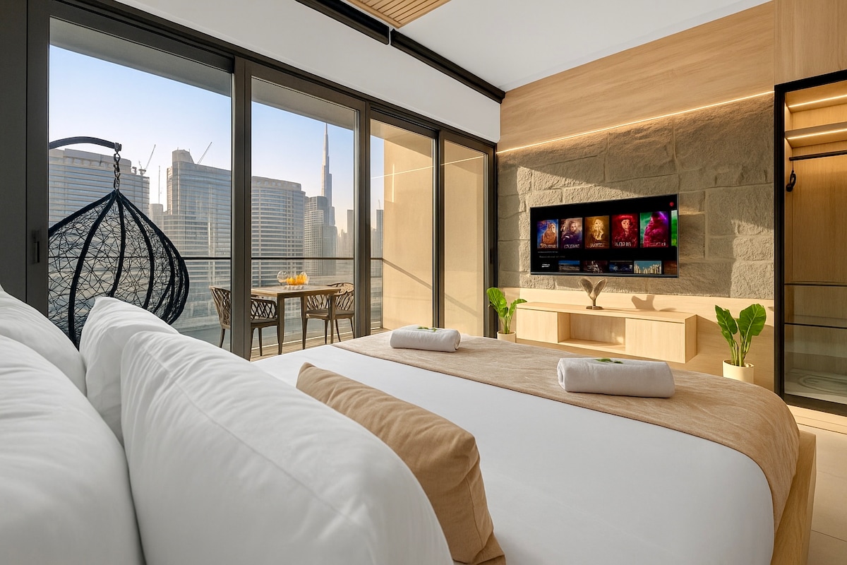 平均评分 5 分(满分 5 分),共 3 条评价豪华1卧室,带按摩浴缸和哈利法塔景观