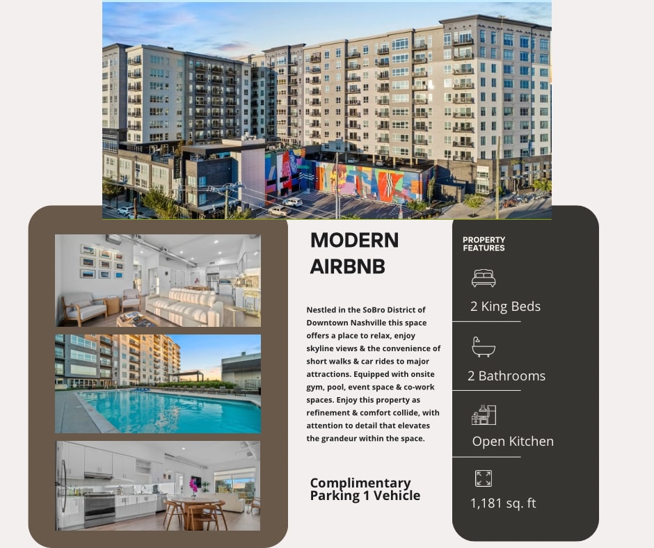 Indulge in this spacious downtown Nashville Airbnb furnished by RH. Discounts for qualifying stays, message host for details along with amenities that cater to the needs & desires of our guests. From luxurious bedding & upscale appliances to high-speed internet & complimentary parking every detail was carefully curated to ensure a comfortable stay. The Airbnb is located in a prime location, which makes for short walks! Come relax & enjoy! Permit # T2022056620