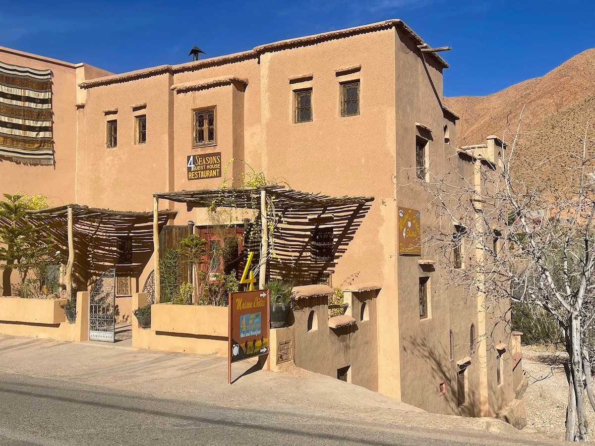 Petite maison au coeur du village fortifie construite en terre et bois: intéressant a visiter.beaucoups de monuments historiques a visiter:village abonndone;kasbah ifri et excursion aux nomades;4heures de marches:allée et retour. Le petit déjeuner et le dinner ne sont pas inclus. déjeuner (tajin) 10 euro - pour deux personnes petit déjeuner 3 euros par personne