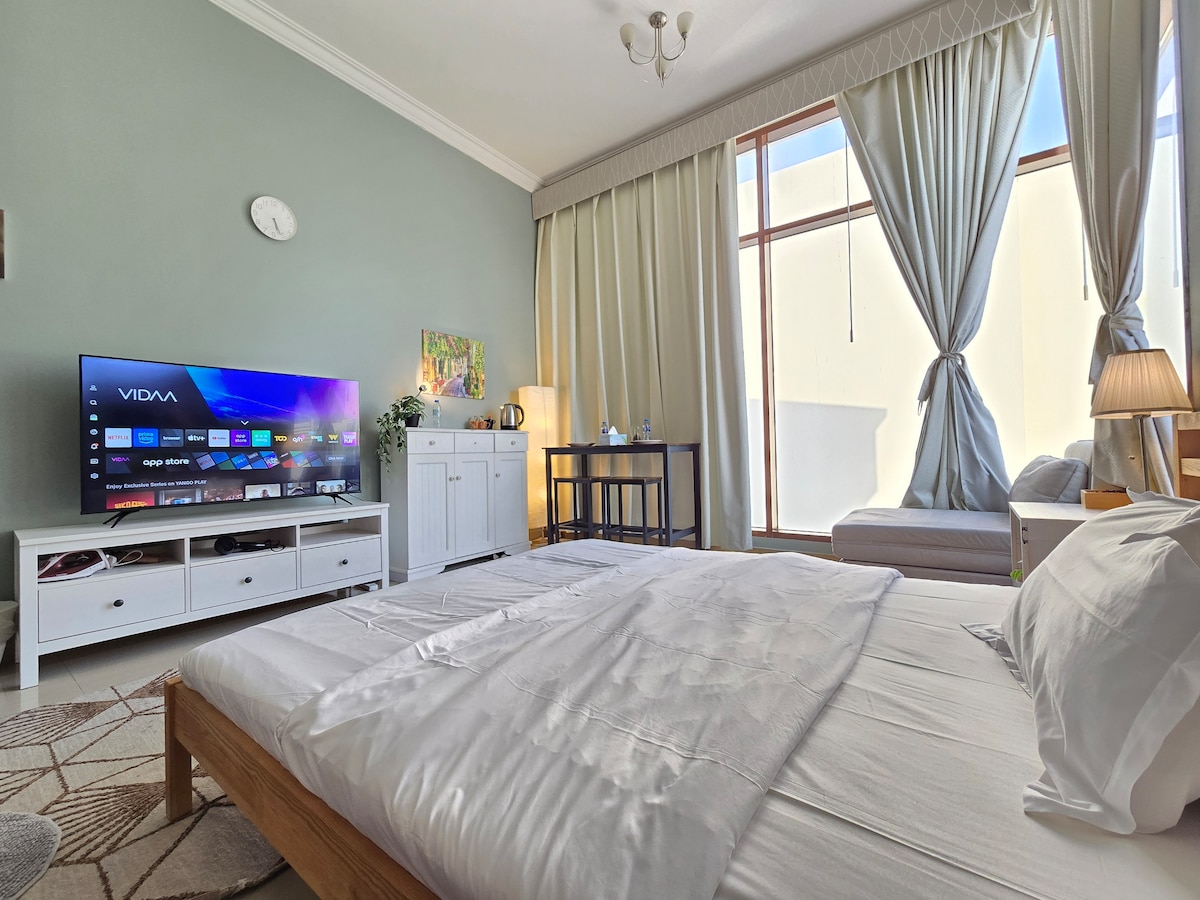 Enjoy a calm stay in the heart of the city. Welcome to this charming studio, ideal for both short getaways and longer stays. Situated in a well-kept complex near the Dubai World Trade Center and Exhibition Halls, you'll be perfectly placed to explore the city. • Just 14 minutes (13 km) from all airport terminals 7 minutes to BurJuman Mall 4 km to Jumeirah Beach Only a 9-minute walk (650 m) to Max Metro Station