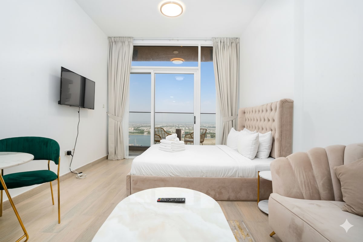 This homely studio is a culmination of peaceful neutral hues, and pleasing modern décor to maintain a welcoming aesthetic in Damac Hills Carson Tower A. The sizeable space also represents an escape from the bustling part of town, while being in perfect proximity to access its prime attractions. Occupants will also have access to a full range of smart appliances including a smart Tv as well as A-Z household appliances for peak comfort.