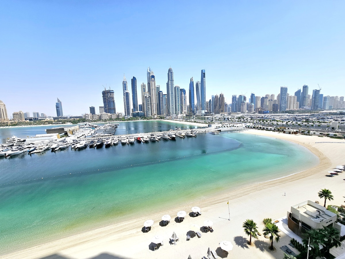 Welcome to your dream beach escape in this stunning one bedroom the Palace Beach Residence Tower in Dubai Harbour! Relax with sweeping views of the Atlantis and Palm Jumeriah watching super yachts pass by, take a dip in the infinity pool, and enjoy top-notch amenities. Ideal for Families and Business Travelers. Designated parking included. One King bed and Queen sofa bed sleeps 4 *Private Beach for residents with sun loungers and life guard *Infinity pool overlooking the Marina Skyline