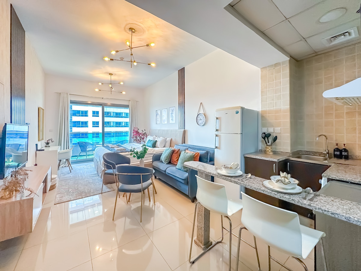 靠近迪拜码头地铁和海滩的酷炫单间公寓