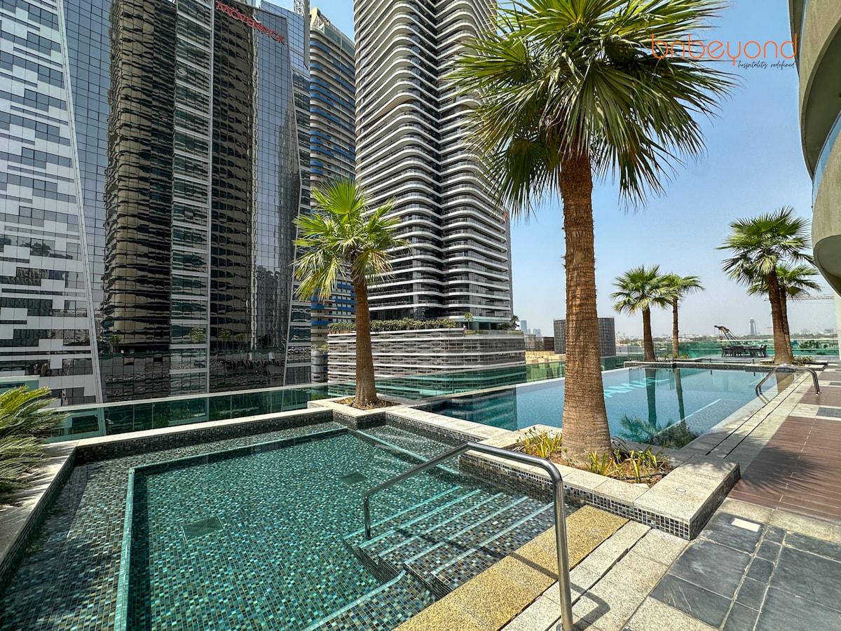 Amazing infinity pool & Spa Accommodates up to 4 persons. king bed + sofa Bed (queen) Hotel Grade amenities include: Pool, Gym, Spa, salon, kids pool, coffee shop & more. This studio apartment is located in the heart of Business Bay, Downtown Dubai, with breathtaking views of Dubai Water Canal and partial views of Burj Khalifa. It is also within walking distance of Dubai Mall, the world's largest shopping mall. The apartment is equipped with everything you need for a comfortable stay.