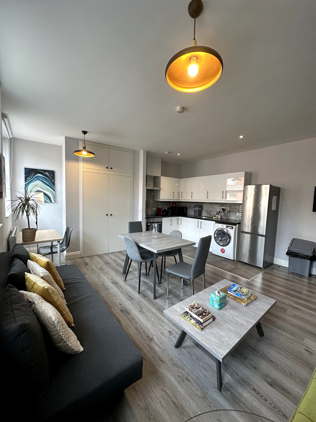 Awarded Top 10% of Airbnb Homes 🏆 An entire apartment, nothing shared, Fast Wi-Fi (95-100 mbps), Google home, Sky 50 inch HDTV & Netflix. You’re welcomed with a Continental Breakfast with personalised Milk Choice and all the essentials you’ll need for a superb stay. Giving the amazing location this apartment is very peaceful inside. It faces the garden side and as there are only 10 apartments in the block, you’re guaranteed a great night’s sleep. No lift though, sorry