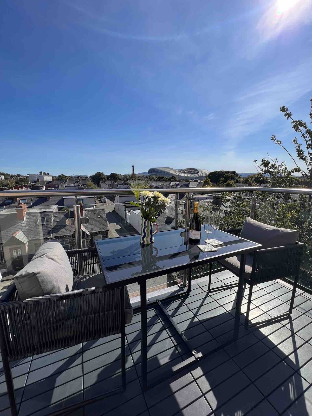 Enter through a beautifully restored 1870s Georgian Dublin exterior into a modern light-filled interior space with glazed double-height ceilings, a beautiful and private planted deck. Cook and dine in a kitchen designed for creativity and entertaining. Then retreat to the deep comfort of the custom-built lounge, equipped with a Samsung Frame TV and Samsung Soundbar to play music through. At bedtime rest in serene uncluttered luxury. Every comfort considered, every aspect thoughtfully designed. Featured in Image Interiors, The Sunday Times, The Irish Times, 25 Beautiful Homes and more Victoria Terrace is a unique and beautiful house. It's design has been celebrated in the Sunday Times, Irish Independent, Image Interiors magazine, Apartment Therapy, 25 Beautiful Homes magazine. Featured in advertising campaigns and the film 'History's Future'. Recently honoured to be included in the Irish Architectural Foundation's Open House Weekend. Described by Image Interiors Magazine as a : 'Hidden Treasure' 'Tucked up a winding lane and just a stone's throw from the hustle and bustle of Dundrum, interior designer Sarah Lafferty's home is a little gem bursting with inspirational ideas' Location Perfectly located in a quiet street beside the Dundrum Luas station (pleasant 13 min journey on LUAS light rail to centre of Dublin, trains every 5 mins). In one of the most desirable and fashionable neighbourhoods in Dublin. 5 min walk to shops and restaurants of award winning Dundrum Town Centre. A 15 min drive to Green belt of Dublin and Wicklow mountains. A 5 min drive, or 30 min walk to Marley Park Free street parking available nearby. Design Georgian Dublin cottage extensively and sustainably renovated with underfloor heating throughout, high speed broadband, all life's modern conveniences, a beautiful well equipped kitchen, a quiet and peaceful private courtyard, 2 bathrooms and 2 bedrooms. IMPORTANT TO NOTE that due to the open nature of the stairs in the main bedroom and the ladder in the kitchen, that unfortunately the house isn't suitable for children between the age of 1 and 6 years. Kitchen Large, spacious, bright, double height ceiling with skylights and two double doors opening up to private decked courtyard with garden furniture. Italian limestone floors. Solid oak dining table to seat 6. Gas hob, 2 ovens (gas and electric), microwave, warming drawer, double ceramic sink, dish washer, fridge/freezer, pull out ironing board and steam iron. Living Area Open to kitchen. Solid limed oak paraquet flooring. U shaped modular sofa designed especially for the space with movable footstool for serious lounging. Private, sheltered, timber decked courtyard with lounge type garden furniture and barbecue. Main Bedroom Spacious and elegant, with double height ceiling and stairs to private mezzanine. Double bed with high quality mattress, goose down duvet and pillows ( if you have allergies let me know I can change these) and top quality bedding. The room is beautiful at night with an attractive layering of designer lighting ( hotel style double switching from the bed) Limestone flooring and welcome underfloor heating. Limited visitor storage on the mezzanine upstairs. Ensuite bathroom Small but perfectly formed wet room with good shower. Second Bedroom Small, but bright and cozy (My friend described the experience of sleeping there as 'sleeping in a cloud') Double bed with high quality mattress and bedding. Underfloor heating, limestone floor. Lots of storage, and hanging space. There is an option to make the sofa in the living area into a single bed if guests would rather have their own sleeping space. Main bathroom With a very attractive green marble floor and brass fittings, a full bath and good shower. Extras *Fresh flowers *Towels, hand towels and bath mats are provided. *Luxury shower gel and hand soap provided in both bathrooms. *Collection of travel books relevant to the area. *A full extensive Victoria Terrace brochure produced just for you! Giving you everything you need to know on the house, the local area, and Dublin City and county. A PDF of this will be emailed to you prior your arrival. *Basic food parcel with local specialties. Entire house and garden Myself or my parents will be there to welcome you and show you around the house. If there's any issues one of us will be only a few minutes away. The house is located on a quiet street within easy walking distance of the bustle of the restaurants, theatre, and shops of the internationally acclaimed Dundrum Town Centre. For something quieter stroll to the farmers market, gardens, and cafe at the beautiful Airfield Estate. Take a short and pleasant journey by light rail to the center of the city. The station is just across the street. Visible from the house the beautiful Dublin Mountains are a mere 15 min drive away. Perfectly located in a quiet street beside the Dundrum Luas station (pleasant 13 min journey on LUAS light rail to centre of Dublin (St Stephens Green), trains every 3-5 mins. 7 min walk to the Pembroke District restaurants and some of the best shopping in the city at the award winning Dundrum Town Centre. Fancy a yoga class during your visit?...I teach in the studio next door. There's guest yoga mats in the house, and I'll get you a discount if you'd like to join my class. When I'm in the country I teach on Tues at 8pm. Check Dundrum Hot Yoga website for further details.