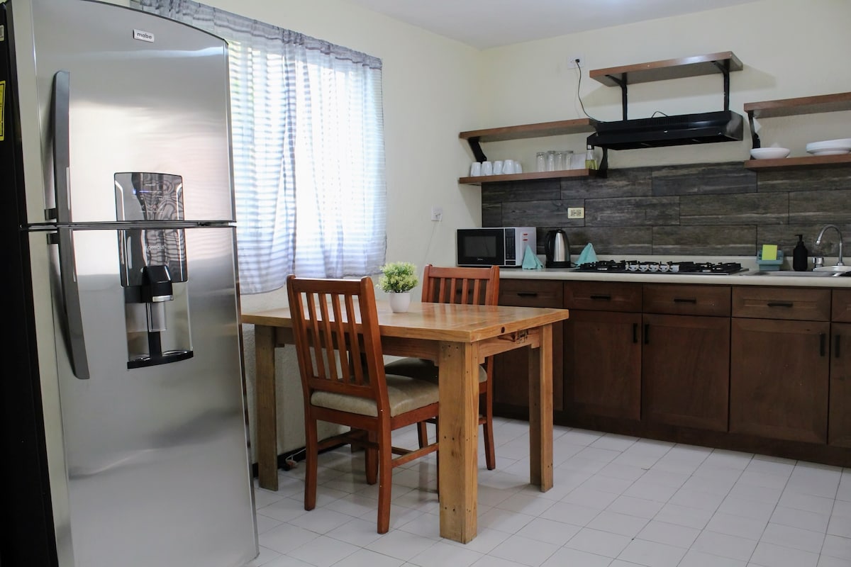 Estacionamiento privado Smart tv Planta baja Amplios espacios Zona muy segura Silencioso Cocina equipada Internet de gran velocidad Entrada autónoma 8 min del centro histórico 10 min de la FENADU 10 min Central camionera 25 min del aeropuerto Muy bien comunicado, cerca súper mercados, restaurantes, gimnasios y tiendas de autoservicio Calentador solar Alojamiento no compartido