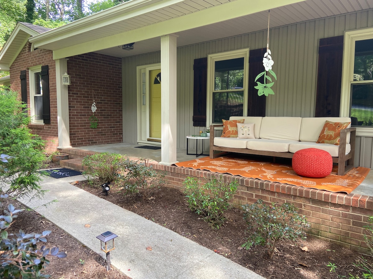 Relax with the whole family at this peaceful home between Duke and UNC, in one of the triangle's best neighborhoods. Woods everywhere, yet close to dining and shopping, coffee shops and farm stands. Just a six mile drive to Duke, UNC, and RTP, so literally in the center of everything, yet so peaceful! Enjoy modern kitchen, fireplace, fiber Internet & great outdoor spaces! We are glad to host you and we live right down the street, so come and relax and let us know if you need anything at all.