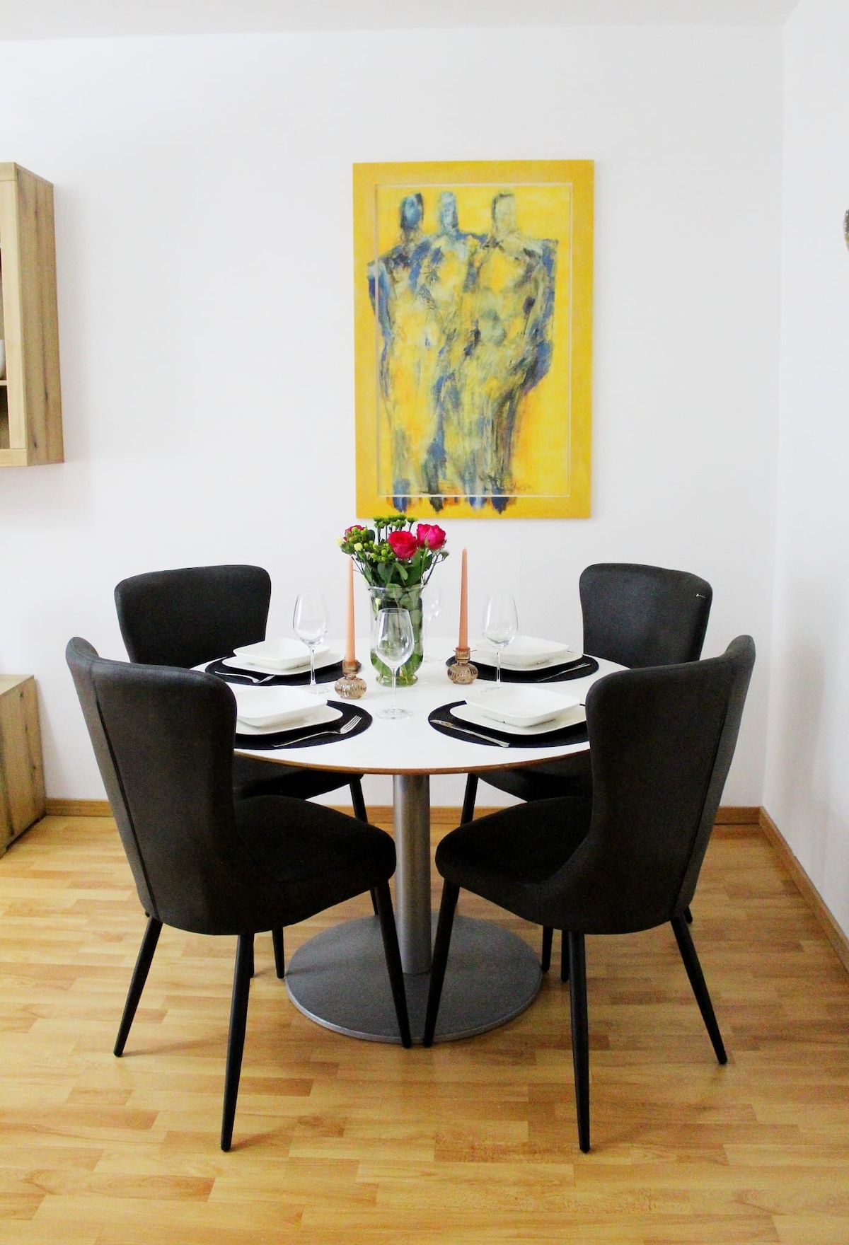 Ferien, Messe, Geschäftsreisen, kleine Fotoshooting (nur auf Anfrage), Wochenendurlaub... Gefällt Ihnen das Andere, Besondere? Dann liegen wir auf einer Wellenlänge. Die komplett sanierte Degenfabrik bietet Ihnen ein Ambiente, das die Zeit ein wenig langsamer laufen lässt. Parkplatz vorhanden, 10 bis 15 min zur City, diverse Restaurants und Geschäfte, Regionalbahnanbindung. Die Sportanlage liegt hinter dem Haus. Im selben Gebäude betreiben wir eine Kunstgalerie, die gerne besichtigt werden kann.