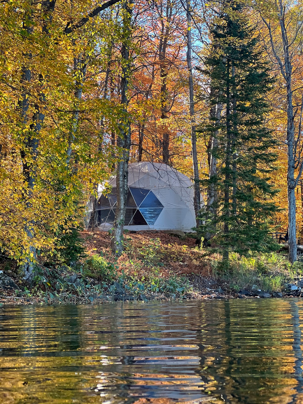 湖畔豪华露营圆顶屋和水疗小木屋