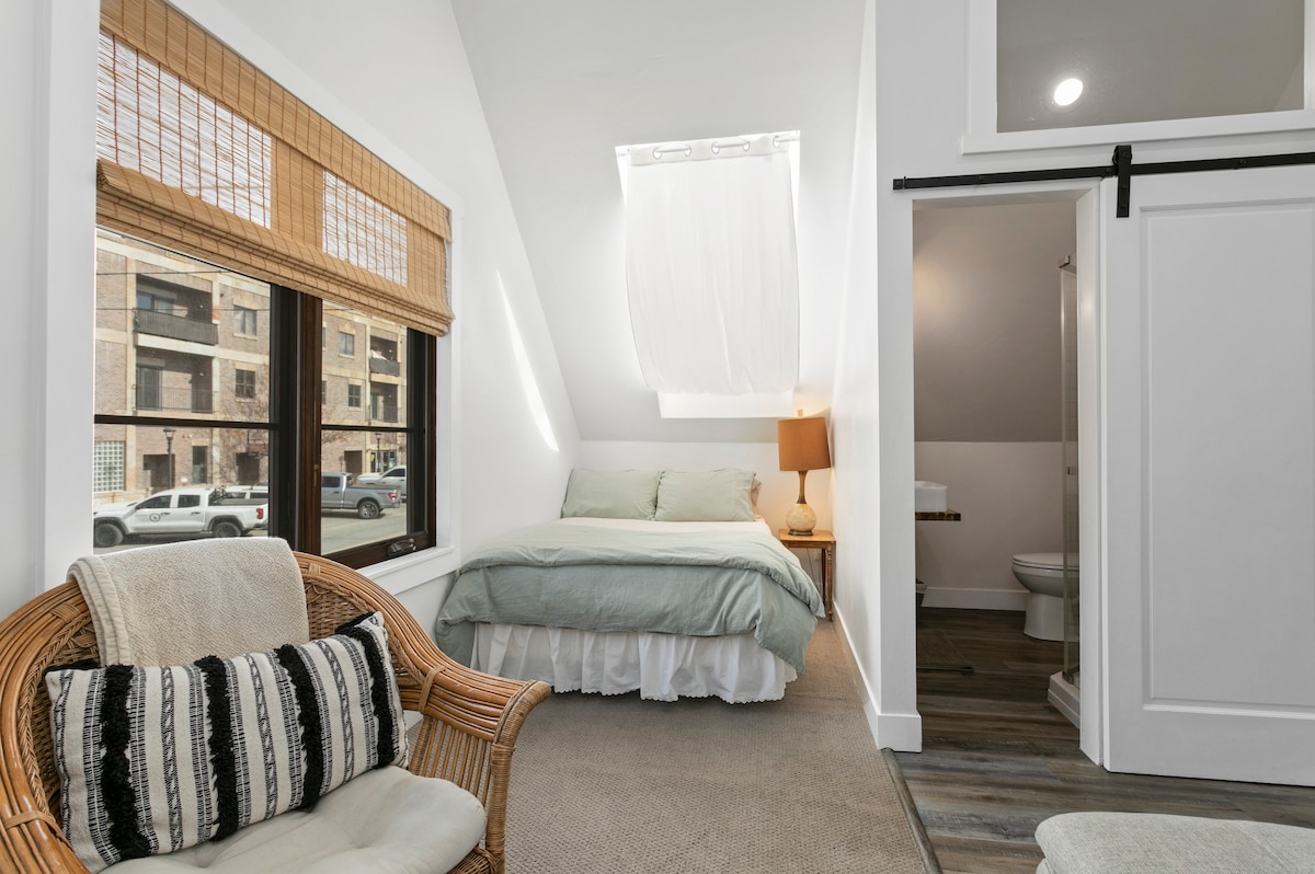 "Stay Awhile" a large studio minutes from Vail & Beaver Creek nestled by a babbling creek and a natural spring. Secured private entrance, kitchen, full bath, living & dining, gas fireplace, queen bed, WIFI, TV, hardwood floor, starry nights and massive pine tress provides privacy, making this the ideal Colorado mountain getaway. For guests needing additional space, an additional reservation can be made at "Unwind" directly under "Stay Awhile". This room as a queen bed, bathroom and a W/D.