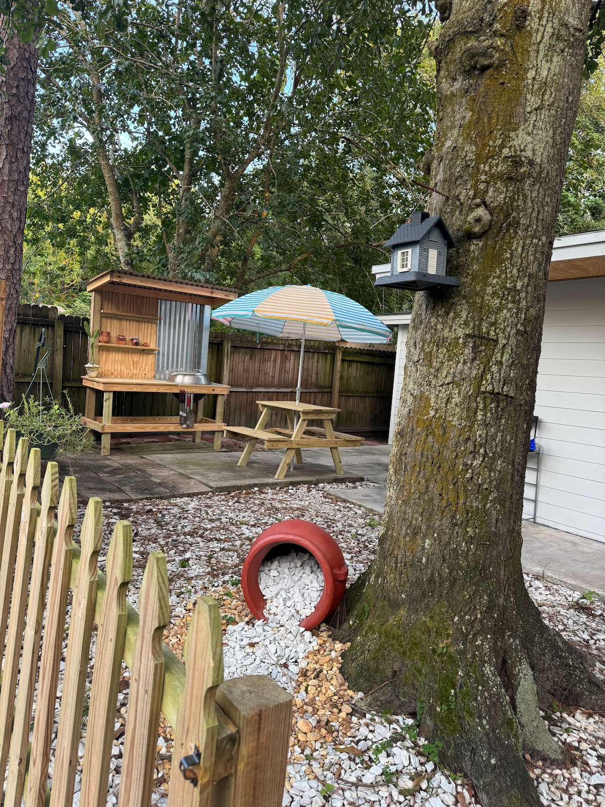 Mr. Rogers house is conveniently located right off college drive in Orange Park. Making this the perfect spot for anyone visiting family in Fleming Island, Orange Park and even Middleburg. The house is on a quiet culdesac. This home is an extension of our Farm House just a 1.5 down the road. We welcome our guest to visit us during feedings to meet our lovely animals at HayStays Farm.