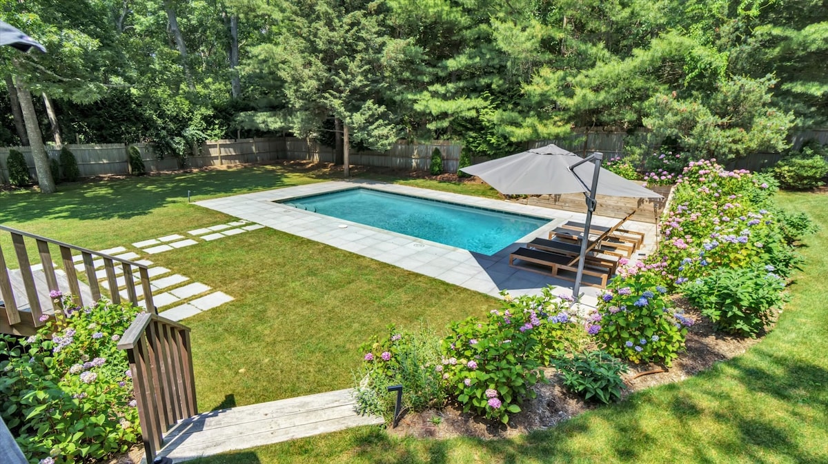 Hamptons Oasis: pool, grill, lush landscape