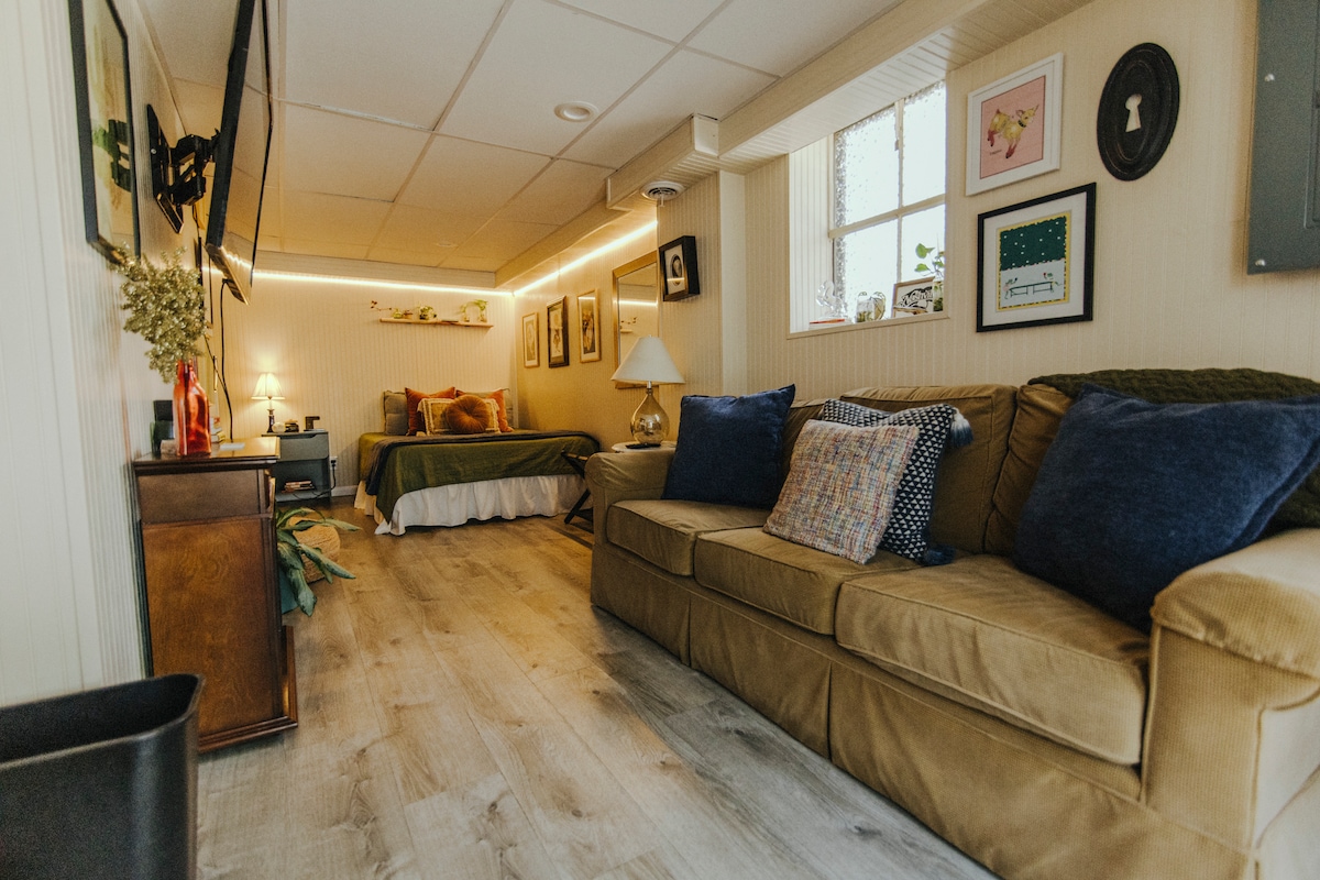 Comfortable downstairs apartment with queen bed, bathroom, fireplace, smart tv, desk & free parking on street. Apartment sized couch (non-sleeper). Surrounded by E. Nashville's favorite restaurants. Short Lyft/Uber to downtown, parks, airport. Walkway has 6+ stairs with handrail. Two steps into apartment. Note: Early or late check in has a $15 fee. If requested, the fee will be charged and we will change the cleaning schedule.