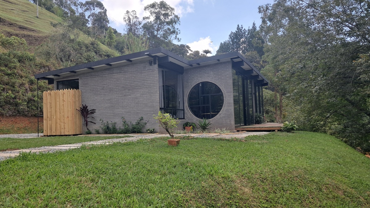 Enjoy our wonderful modern yet rustic chalet, situated in the tranquility of rural Guatapé, tucked away in a private valley by a rustling creek. Entirely built with hardwood and natural stone, bordered by a natural creek and forest. It's the perfect place to get away from the noisy city and quietly wind down, read, write or meditate. (discounted monthly prices - please pm for more info!). Fast and reliable Internet included.