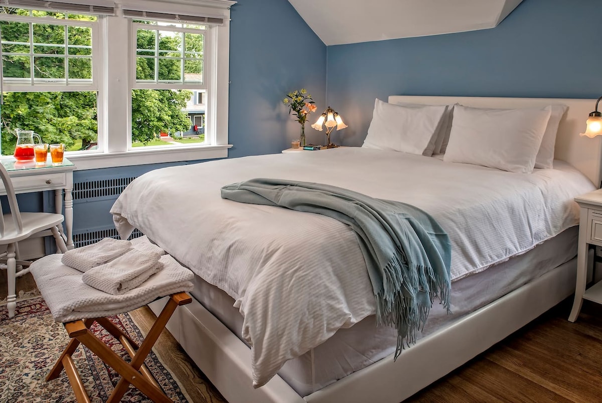 You’ll love the central location of this stylish & charming place to stay. The Main Bedroom of the house from 1931 to 2012, features a large private bathroom en suite with a shower & tub, king size bed, a separate dressing room and seating area, mid-century modern decor, our biggest room with over 600 sq. ft. Nespresso coffee and other beverages and treats provided in your room. Can accommodate 3 upon special request.